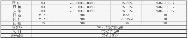 國標重型截止閥零件材料與工況:
