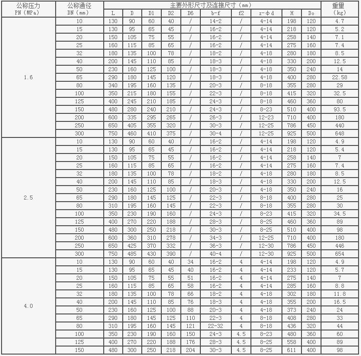 國標重型截止閥主要尺寸及重量: