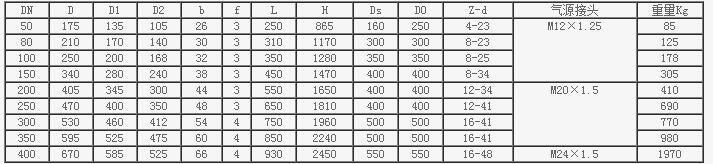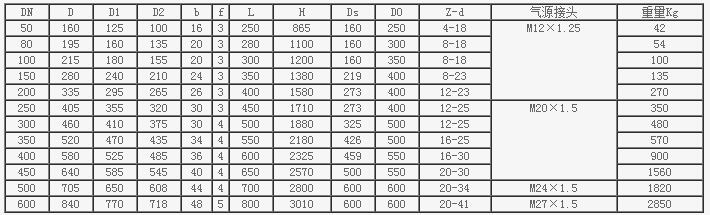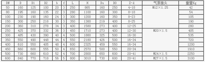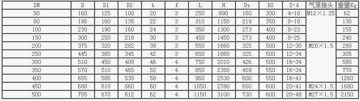 PN2.5MPa Z641H氣動(dòng)閘閥主要連接尺寸和外形尺寸