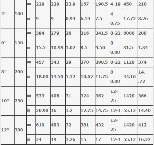 Q41H美標硬密封球閥150Lb產(chǎn)品主要尺寸: