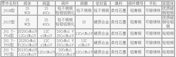美標(biāo)截止閥主要零部件材料Material for main parts