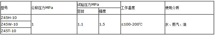 二、Z45H-10鑄鋼暗桿閘閥性能參數(shù):