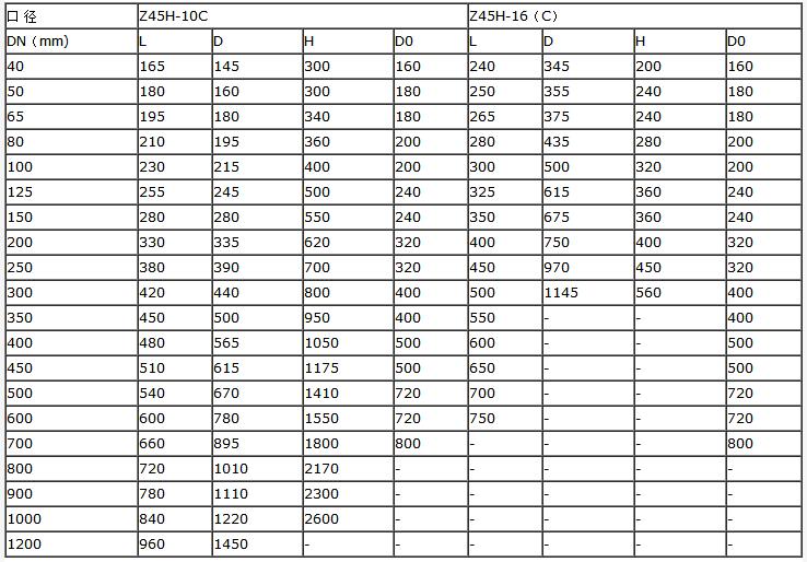 四、Z45H-10C與 Z45H-16(C)的尺寸數(shù)據(jù):
