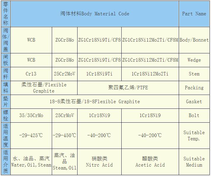精鑄重型帶材質(zhì)閘閥主要零件材料: