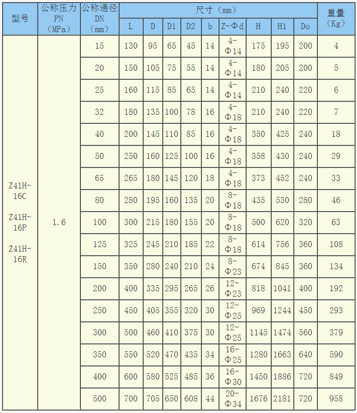 精鑄重型帶材質(zhì)閘閥主要外形與尺寸::(Z41H-16)