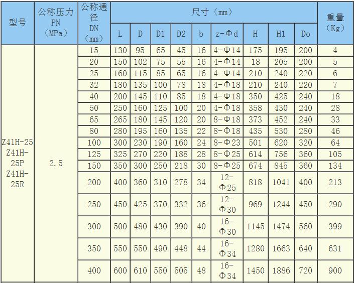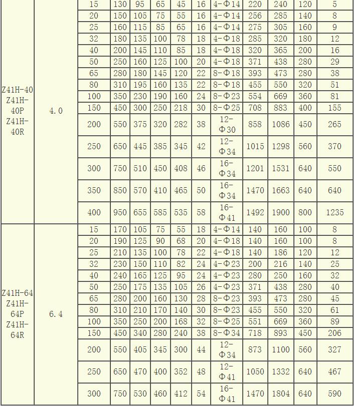 精鑄重型帶材質(zhì)閘閥主要外形與尺寸::(Z41H-25、40、64)