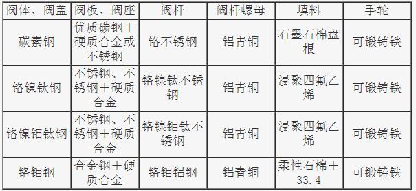 4、WC6、WC9鉻鉬鋼閘閥材料代號"I":水、油、蒸汽(溫度≤595℃)