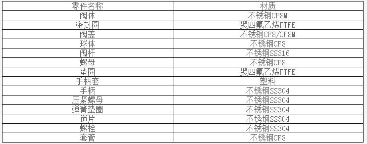 Q61F三片式活接對(duì)焊球閥主要零件材料