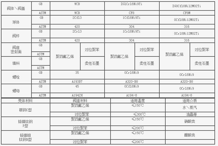 閥體材料:WCB、ZG1Cr18Ni9Ti、ZG1Cr18Ni12Mo2Ti、CF8(304)、CF3(304L)、CF8M(316)、CF3M(316L)、Ti。選用不同的材質(zhì),可分別適用于水、蒸汽、油品、硝酸、醋酸、氧化性介質(zhì)、尿素等多種介質(zhì)。