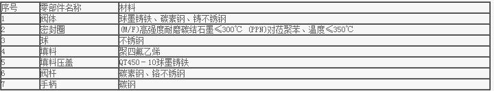 不銹鋼高溫球閥主要零部件材料: