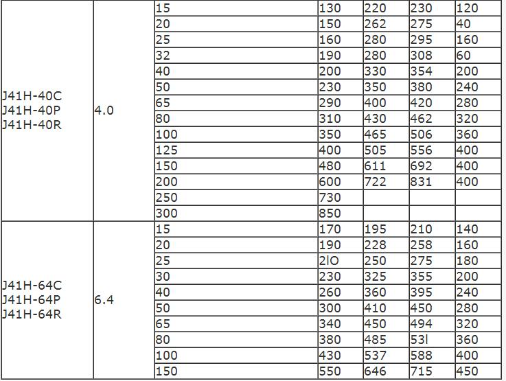 型號:J41H-16C(鑄鋼)、J41H-16P(304)、J41H-16R(316)、J41H-25C、J41H-40C、J41H-64C、J41H-64P、J41H-64R
