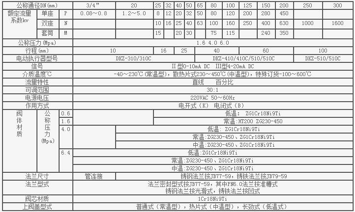 電動套筒調(diào)節(jié)閥規(guī)格與技術(shù)參數(shù)