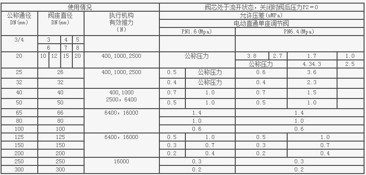 注:雙座、套筒閥一般可承受≤公稱壓力,單座調(diào)節(jié)閥差壓可參考上表。