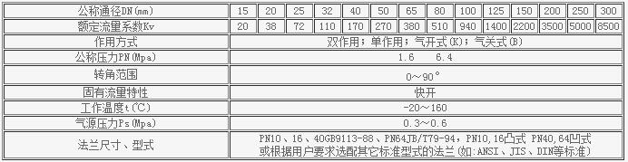 ZSHO型氣動(dòng)O型切斷球閥主要技術(shù)參數(shù)