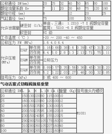 氣動活塞式切斷閥技術(shù)參數(shù)