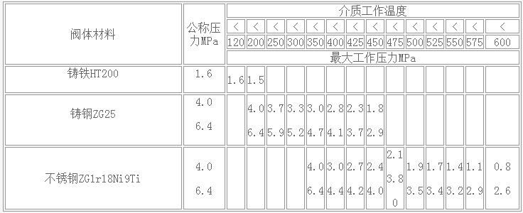 六、電動雙座調(diào)節(jié)閥主要零件材料及推薦使用溫度范圍: