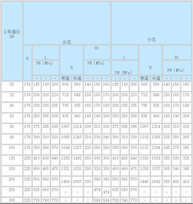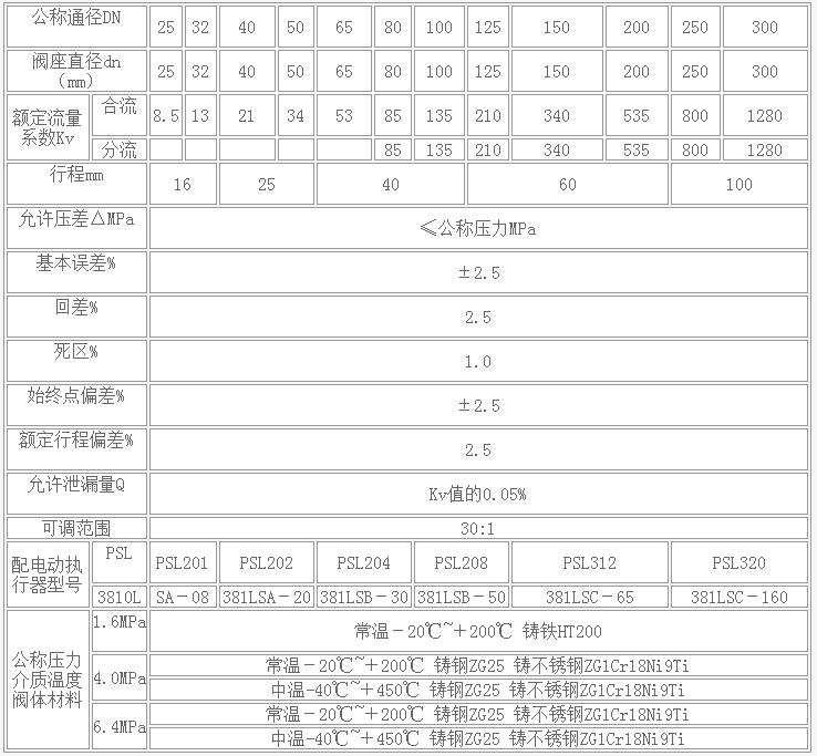七、電動雙座調(diào)節(jié)閥 規(guī)格參數(shù)表: