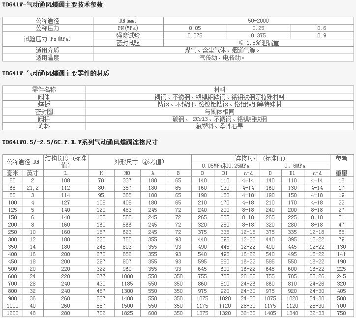 TD641W-氣動通風(fēng)蝶閥采用標(biāo)準(zhǔn)