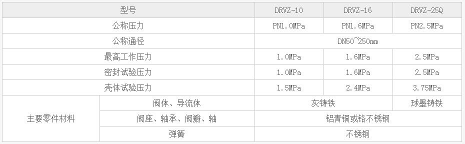HC42X(DRVZ)型靜音式止回閥 主要技術(shù)參數(shù)