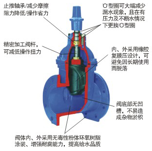 長期以來市場上使用的一般閘閥普遍存在漏水或生銹現(xiàn)象,本企業(yè)引進歐洲高科技閥門制造技術(shù)生產(chǎn)的彈性座封閘閥,克服了一般閘閥密封不良、彈性疲乏、橡膠老化及生銹等缺陷。彈性座封閘閥利用彈性閥門產(chǎn)生微量彈性變形的補償作用達到良好的密封效果,該閥具有開關(guān)輕巧、密封可靠 、彈性記憶佳及使用壽命長等顯著特點??蓮V泛用于自來水、 污水、建筑、石油、化工、食品、醫(yī)藥、輕紡、電力、船舶、冶金、能源系統(tǒng)等流體管線上作為調(diào)節(jié)和截流裝置作用。
