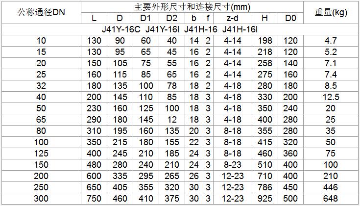 六、J941Y-16型主要尺寸和重量
