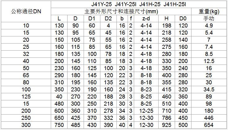 七、J941Y-25型主要尺寸及重量
