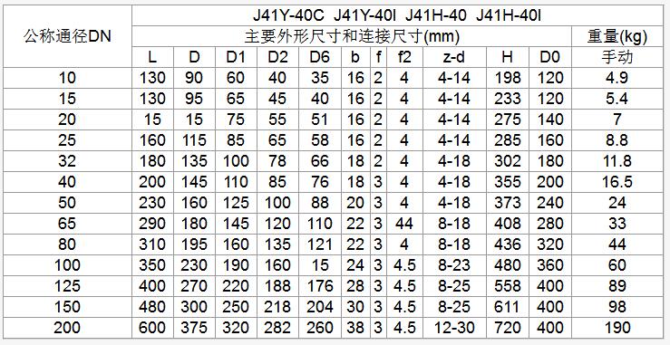 八、J941Y-40型主要尺寸和重量