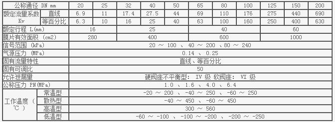 精小型氣動單座調(diào)節(jié)閥主要技術(shù)參數(shù)