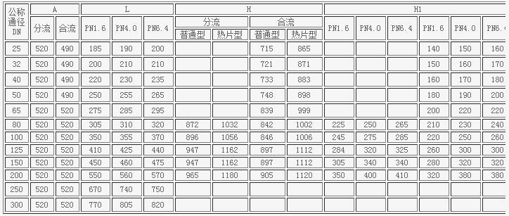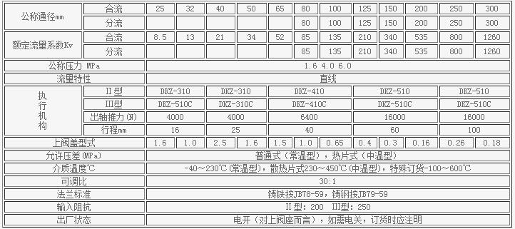 電動三通合流-分流調(diào)節(jié)閥主要技術(shù)參數(shù)